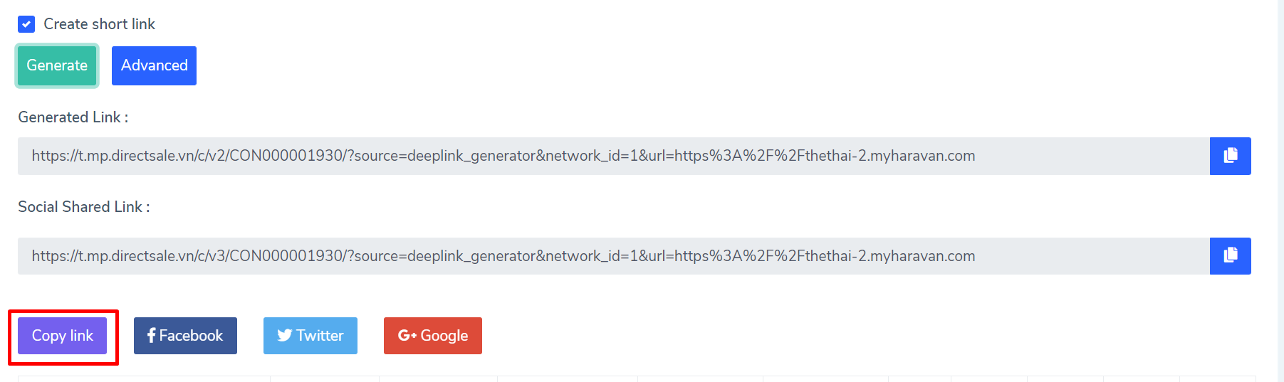 B4. Click "Copy link" để copy link và đi share link của chương trình promotion đã join